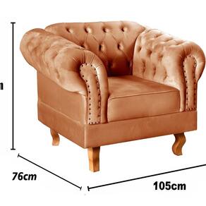 Não rasgue a embalagem antes de ter certeza que ficará com tudo. Acompanha Almofadas extras: Não Acompanha Puff: Não Almofada do assento: Removível Almofada do encosto: Não Possui Altura do assento até o chão: 41 cm Altura do Encosto: 82 cm Ambiente Principal: Sala de Estar Complexidade da Montagem: Baixa: pode ser montado por uma pessoa sozinha Cor: Terracota Cor do Produto: Terracota Design Assinado: Não Enchimento do Assento: Espuma D-26 Enchimento do Braço: Espuma D-26 Encosto para a Cabeça: Não Estampado: Não Extensível: Não Firmeza do Assento: Médio Informações Complementares: 120Kg por acento Itens Inclusos: 1 Poltrona Dom Pedro (incluindo seus respectivos pés apenas pra enroscar) Linha ou Coleção: Chesterfield Material do Braço: Madeira Eucalipto Material dos Pés: Madeira Eucalípto Modelo de Poltrona: Fixo Necessita Montagem: Sim Origem do Produto: Nacional Peso: 35 kg Possui Percintas Elásticas: Sim Possui Pés: 04 Possui Rodízio: Não Recomendações de Uso, Manutenção e Limpeza: Limpeza e cuidados: pode ser utilizado aspirador de pó, escova com cerdas macias ou limpeza a seco. Não utilizar produtos químicos, abrasivos ou limpeza a vapor. Evitar exposição prolongada ao sol. Sistema de Montagem: Enroscar os Pés Suporta Até (kg): 120 kg Tecido Predominante: Veludo Tipo de Assento: Fixo Tipo de Encosto: Fixo Tipo de Espuma do Assento: Espuma Convencional Tipo de Poltrona: Decorativa