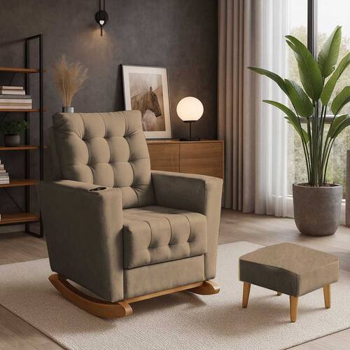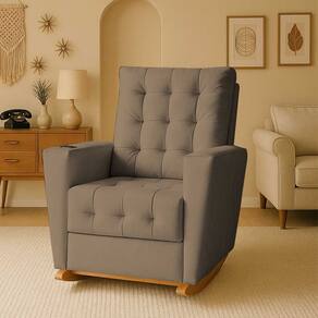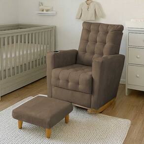 Poltrona Duna para Amamentação Tecido Suede Balanço e Puff