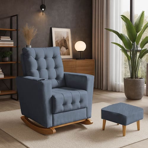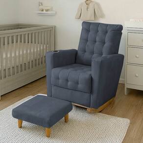 Poltrona Duna para Amamentação Tecido Suede Balanço e Puff