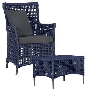 Poltrona E Mesa Igapó Em Alumínio Marrom Corda Náutica E11 Azul