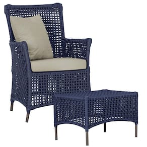 Poltrona E Mesa Igapó Em Alumínio Marrom Corda Náutica E7 Azul