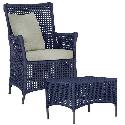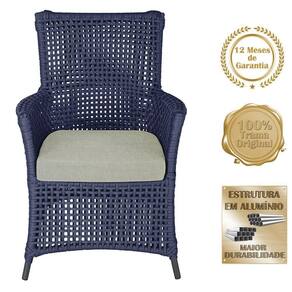 Poltrona E Mesa Igapó Em Alumínio Preta Corda Náutica E3 Azul - Preto