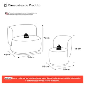 ** POR SE TRATAR DE UM ESTOFADO, AS MEDIDAS PODEM SOFRER UMA VARIAÇÃO DE ATÉ 3 CM.