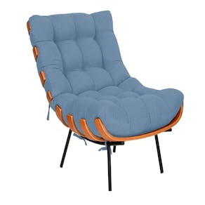 Poltrona e Puff Costela Com Base Metálica Preta no Linho Azul - Vallisa Decor