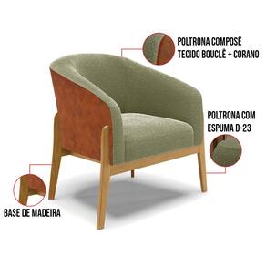 A Poltrona Stella é a combinação perfeita de conforto, elegância e modernidade. Seu design curvo e marcante oferece uma sensação única de aconchego, como um abraço acolhedor, tornando-se a peça ideal para compor sua decoração com estilo e sofisticação. Revestida em Sintético PU Nozes com Bouclê Pistache, a poltrona traz o toque da tendência atual. Seja na sala de estar, quarto ou escritório, ela se adapta com facilidade. Sua estrutura robusta é sustentada por uma base de madeira (fixa), unindo resistência e design contemporâneo. A tendência desse estilo minimalista ganha destaque, conferindo sofisticação ao móvel, que é perfeito para qualquer espaço que exija funcionalidade e bom gosto. Com enchimento em espuma D-23 no encosto e assento, o kit Poltrona Stella garante o máximo de conforto, mesmo em longos períodos de uso. O conjunto, acompanha um lindo puff que é ideal para você apoiar os pés, garantindo descanso absoluto. Além desse modelo, também temos várias opções em base/pés e uma grande variedade de tecido/cores para atender ao seu estilo e conforto. E para deixar seu ambiente ainda mais harmonioso, oferecemos também kits especiais no mesmo design. Caso queira ajuda para escolher a melhor opção para o seu espaço, estamos à disposição!