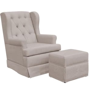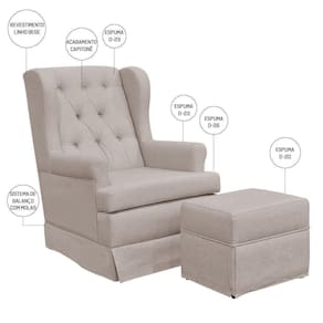 Poltrona De Amamentação Com Balanço E Puff Helena P02 Capitonê Linho Bege - Lyam Decor