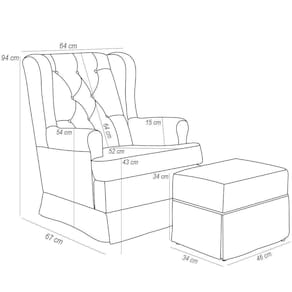 Descrição do produto: A hora da amamentação é um momento de incrível conexão da mãe com o bebê. Nesta nova e desafiante fase, a poltrona de amamentação ideal faz total diferença para que flua mente e atenda todas as necessidades, deixando a mãe e o bebê extremamente confortáveis. Possui mecanismo de balanço, é o movimento da poltrona é uma opção funcional para ajudar a acalmar o bebê. Para a mãe, previne possíveis dores ou desconforto na hora de amamentar, além da altura ser ideal para que levante da poltrona sem dificuldades, e também sem acordar o seu pequeno. O puff é um componente aliado para o conforto dos pés, detalhe que faz total diferença.