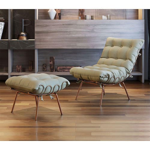 Poltrona e Puff M07 Estrutura de Ferro Mais Decor - Bege