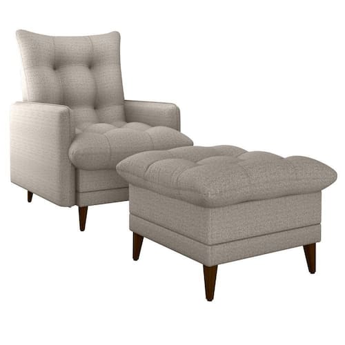 Conjunto Poltrona com Puff Montreal combina conforto e funcionalidade, composto por duas peças ideais para momentos de descanso ou amamentação. A poltrona conta com sistema reclinável de dois estágios (modo leitura e descanso), estrutura em madeira de Eucalipto de reflorestamento, reforçado com precintas elásticas. O assento e encosto são preenchidos com uma combinação de fibra siliconada e flocos de espuma (assim como o Puff), enquanto as braças são em espuma D23, o revestimento em tecido Vancouver Linen (linho misto com toque leve, visual contemporâneo e ótima resistência). Os pés também em madeira completam, suportando até 110 kg por assento. Este móvel chegará em sua casa separado em 01 volume.