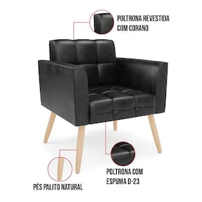 Você gosta de colecionar vários momentos memoráveis com sua família e amigos? Que tal recebê-los, com móveis de altíssima qualidade que só a DRossi tem? A Poltrona Elisa é adequada para você! Seu design retrô é a grande tendência do momento. Pode ser usada em diversos espaços da casa, em salas, hall de entrada, quartos, cozinhas, varanda, sacada, escritório, dentre outros. Contém as seguintes características: A estrutura é feita de madeira de Eucalipto 100% de reflorestamento, e os Pés Palito Natural, além de serem resistentes e duráveis, suportam em média até 120 kg. Assento, encosto e braços, contém enchimento de espuma D-23 e é estofada em tecido Corano, no tom Preto, que oferece muito conforto e resistência ao sentar, com aquela sensação de maciez e aconchego. Possui também, detalhes de costura no encosto e assento, resultando em um acabamento impecável, conferindo muito mais valor e elegância ao seu espaço. Para complementar a decoração com essa linda poltrona, a dica é utilizar mantas, almofadas ou vasinho de flor. E pronto, seu cantinho estará perfeito para descansar e relaxar! Aqui, você encontra várias opções, para que seus amigos e familiares se sintam acolhidos. Garanta já sua Poltrona.