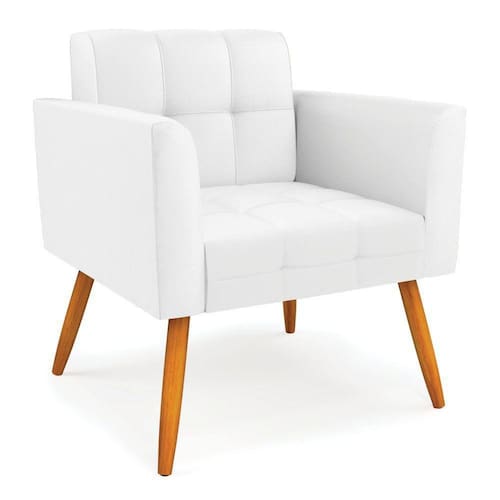 Você gosta de colecionar vários momentos memoráveis com sua família e amigos? Que tal recebê-los, com móveis de altíssima qualidade que só a DRossi tem? A Poltrona Elisa é adequada para você! Seu design retrô é a grande tendência do momento. Pode ser usada em diversos espaços da casa, em salas, hall de entrada, quartos, cozinhas, varanda, sacada, escritório, dentre outros. Contém as seguintes características: A estrutura é feita de madeira de Eucalipto 100% de reflorestamento, e os Pés Palito Castanho, além de serem resistentes e duráveis, suportam em média até 120 kg. Assento, encosto e braços, contém enchimento de espuma D-23 e é estofada em tecido Corino, no tom Branco, que oferece muito conforto e resistência ao sentar, com aquela sensação de maciez e aconchego. Possui também, detalhes de costura no encosto e assento, resultando em um acabamento impecável, conferindo muito mais valor e elegância ao seu espaço. Para complementar a decoração com essa linda poltrona, a dica é utilizar mantas, almofadas ou vasinho de flor. E pronto, seu cantinho estará perfeito para descansar e relaxar! Aqui, você encontra várias opções, para que seus amigos e familiares se sintam acolhidos. Garanta já sua Poltrona.