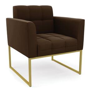 Você gosta de colecionar vários momentos memoráveis com sua família e amigos? Que tal recebê-los, com móveis de altíssima qualidade que só a DRossi tem? A Poltrona Elisa é adequada para você! Seu design retrô é a grande tendência do momento. Pode ser usada em diversos espaços da casa, em salas, hall de entrada, quartos, cozinhas, varanda, sacada, escritório, dentre outros. Contém as seguintes características: A estrutura é feita de madeira de Eucalipto 100% de reflorestamento, e a Base Industrial Metálica Dourada, além de ser resistente e durável, suporta em média até 120 kg. Assento, encosto e braços, contém enchimento de espuma D-23 e é estofada em tecido Suede, no tom Marrom, que oferece muito conforto e resistência ao sentar, com aquela sensação de maciez e aconchego. Possui também, detalhes de costura no encosto e assento, resultando em um acabamento impecável, conferindo muito mais valor e elegância ao seu espaço. Para complementar a decoração com essa linda poltrona, a dica é utilizar mantas, almofadas ou vasinho de flor. E pronto, seu cantinho estará perfeito para descansar e relaxar! Aqui, você encontra várias opções, para que seus amigos e familiares se sintam acolhidos. Garanta já sua Poltrona.