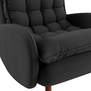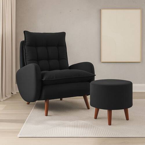 Poltrona Eloá Plus Com Puff é robusta, elegante e muito confortável, excelente opção para transformar a decoração de seu lar ou escritório, pode ser utilizada em vários cômodos e ser aproveitada para leitura, amamentação e descanso. Ela tem um design diferenciado, foi projetada com objetivo de se moldar ao corpo, proporcionando muito conforto e elegância. Ela é feita com espuma certificada e persinta de alta resistência, apresenta muita qualidade, segurança e excelente acabamento. Outro diferencial é o Pilow com fibra siliconada, garantindo um acabamento com grande maciez. Sua estrutura é composta por madeira de eucalipto e pés de madeira em pínus. A Poltrona Eloá é uma ótima aquisição que deixará seu ambiente com uma aparência ainda mais respeitável, além de garantir maior conforto. Acompanha Almofadas extras: Não Acompanha Puff: Sim Almofada do assento: Fixa Almofada do encosto: Fixa Altura do assento até o chão: 50 cm Altura do Encosto: 61 cm Altura dos Pés: 21 cm Ambiente Principal: Sala de Estar codigo_ean: 7900288339751 Complexidade da Montagem: Baixa: pode ser montado por uma pessoa sozinha Cor: Preto Cor do Produto: PRETO Design Assinado: Não Enchimento do Assento: Fibra Siliconada Enchimento do Braço: Espuma D-28 Enchimento do Encosto: Fibra Siliconada Encosto para a Cabeça: Não Estampado: Não Extensível: Não Firmeza do Assento: Médio Informações Complementares: Produto de excelente qualidade, design diferenciado e super confortável Itens Inclusos: 1 Poltrona 2 Pés 21cm Parte Da Frente E 2 17cm Parte Trás + 1 Puff Com 3 Pés Rosqueaveis De 21cm Linha ou Coleção: ambiente moderno Manual de Montagem e Instalação: https://product-hub-prd.madeiramadeira.com.br/935136403/documents/3f6642ae-412f-4386-8fd8-1dfe981f80d542459504346617290215098043.pdf Marca: CIA do Estofado Material do Braço: Molde Braço mdf com acabamento em espuma Material dos Pés: Madeira Eucalipto Modelo de Poltrona: Fixo Necessita Montagem: Sim Origem do Produto: Nacional Peso: 32 kg Possui Percintas Elásticas: Sim Possui Pés: 07 Possui Rodízio: Não Recomendações de Uso, Manutenção e Limpeza: Cuidados: Não expor ao sol ou fonte de calor, pois está sujeito ao ressecamento e alteração da coloração do revestimento; -Não utilizar produtos de limpeza como detergente, álcool, solventes ou produtos químicos: Para a limpeza, utilizar pano umedecido em água, sabão neutro e escova de cerdas macias. Secar à sombra. Em caso de excesso de poeira, usar aspirador de pó; - Não sentar nos braços do sofá; - Não provocar tensões desproporcionais no assento do sofá, através de quedas ou pulos; - Evitar contatos com animais; - Preservar o produto de objetos aquecidos ou pontiagudos; - Mantê-lo em local arejado; - Transportar com o máximo de cautela. Sistema de Montagem: Rosquear os pés na poltrona E no puff Suporta Até (kg): 120 kg Tecido Predominante: Veludo Tipo de Assento: Fixo Tipo de Encosto: Fixo Tipo de Espuma do Assento: Fibra Siliconada Tipo de Espuma do Encosto: Fibra Siliconada Tipo de Poltrona: Decorativa