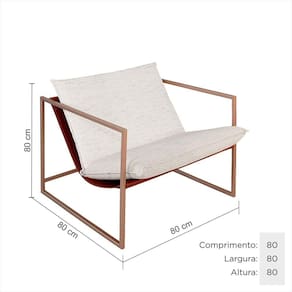 Projetada em aço carbono com pintura micro texturizada, a Poltrona Sara possui um estilo inovador e complementa um ambiente sofisticado e elegante em vários segmentos da decoração de interiores. Possui características, dimensões, acabamento e qualidade de alto padrão. Possui estrutura em aço na estrutura, com sustentação em couro, almofadas de qualidade premium altamente resistente com espuma D30, costuras com fortes, cada pequeno quadrado é costurado um a um e acabamento com requintado, que sua casa merece. Acompanha Almofadas extras: Não Acompanha Puff: Não Almofada do assento: Removível Almofada do encosto: Removível Altura do assento até o chão: 40 cm Altura do Encosto: 40 cm Ambiente Principal: Sala de Estar Cor: Champagne/C70 Cor do Produto: Champagne/C70 Design Assinado: Não Enchimento do Assento: Espuma D-30 Enchimento do Braço: Não Possui Enchimento do Encosto: Espuma D-30 Encosto para a Cabeça: Não Estampado: Não Extensível: Não Firmeza do Assento: Macio Itens Inclusos: 1 Poltrona Manual de Montagem e Instalação: https://cdn2.madeiramadeira.com.br/atributo/cyrne-decor/1332829-manual-de-montagem-poltrona-sara-rev-00.pdf Material do Braço: Aço carbono Modelo de Poltrona: Fixo Necessita Montagem: Não Origem do Produto: Nacional Peso: 22,5 kg Possui Percintas Elásticas: Não Possui Pés: Não Recomendações de Uso, Manutenção e Limpeza: Usar um pano de tecido macio e seco, evitar detergentes, alvejantes e produtos químicos de limpeza; no tampo usar tecido macio levemente umedecido. Suporta Até (kg): 120 kg Tecido Predominante: Linho Tipo de Assento: Regulável Tipo de Encosto: Regulável Tipo de Espuma do Assento: Espuma Convencional Tipo de Poltrona: Decorativa Marca: Sym Decor Ean: 7909903310151