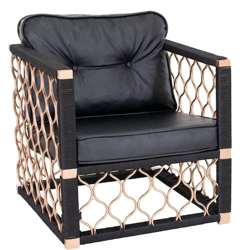Poltrona Trama Em Alumínio Bronze Corda Náutica, Assento Estofado área Externa Cor Preta