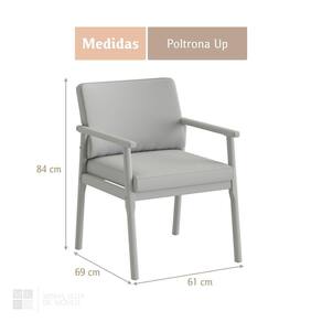 A poltrona Up reúne tudo o que você espera desse tipo de móvel: conforto, design, beleza, estilo e funcionalidade. Perfeitas para integrar a decoração da sala, do home office, do quarto e do espaço de leitura, combinam facilmente com o estilo de decoração que você tem em casa. Acompanha Almofadas extras: Não Acompanha Puff: Não Almofada do assento: Fixa Almofada do encosto: Não Possui Altura do assento até o chão: 46 Altura do Encosto: 84 Ambiente Principal: Sala de Estar Complexidade da Montagem: Baixa: pode ser montado por uma pessoa sozinha Cor: Cinza Cor do Produto: Cinza Design Assinado: Não Enchimento do Assento: Espuma D-23 Enchimento do Braço: Não Possui Enchimento do Encosto: Espuma D-20 Encosto para a Cabeça: Não Estampado: Não Extensível: Não Firmeza do Assento: Macio Itens Inclusos: 1 Poltrona e manual de instrução Manual de Montagem e Instalação: https://product-hub-prd.madeiramadeira.com.br/859167/documents/1b05386a-888f-4f4d-b54b-5e2817321e921404215poltronaup.pdf Material do Braço: Madeira Material dos Pés: Pinus Modelo de Poltrona: Fixo Necessita Montagem: Sim Origem do Produto: Nacional Peso: 9 Possui Percintas Elásticas: Sim Possui Pés: 04 Possui Rodízio: Não Recomendações de Uso, Manutenção e Limpeza: Assento/encosto: use aspirador de pó para eliminar a poeira. Caso seja necessário, passe um pano umedecido em água e sabão neutro e aplique em movimentos suaves a favor do fio do tecido. Enxugue com um pano limpo e seco. Se precisar lavar, faça somente lavagem a seco e leve até uma empresa especializada. Estrutura de madeira: use um pano umedecido com água. Enxugue em seguida com um pano limpo e seco. Cuidados: não use produtos químicos ou abrasivos. A poltrona Air deve ser utilizada em ambientes internos para que não seja exposta a agentes marromis (chuva, sol e umidade). Resistente à Chuva: Não Sistema de Montagem: Parafusos Suporta Até (kg): 100 Tecido Predominante: Linho Tipo de Assento: Fixo Tipo de Encosto: Fixo Tipo de Espuma do Assento: Espuma Convencional Tipo de Poltrona: Decorativa Ean: 7909903354803