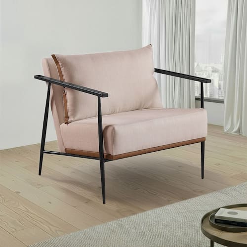 Descrição: Com seu design minimalista, a poltrona Ferco além do conforto, ela tem seu conceito básico e ao mesmo tempo elegan-te. Ela dá vida e leveza ao ambiente. A estética da nossa poltrona Ferco tem detalhes únicos, que nos levam não querer tirar os olhos dela. Com a base feita em ferro, decorada com fivelas super estilosas de couro. Possui espuma D26 soft de 60mm de ótima qualidade, revestida com uma manta siliconada antialérgica, almofadas soltas com enchimento de fibra 100% siliconada. Um produto super versátil que, com seu design, traz a sensação de conforto e aconchego onde ele for aplicado. Feito em tecido linho de alta qualidade.