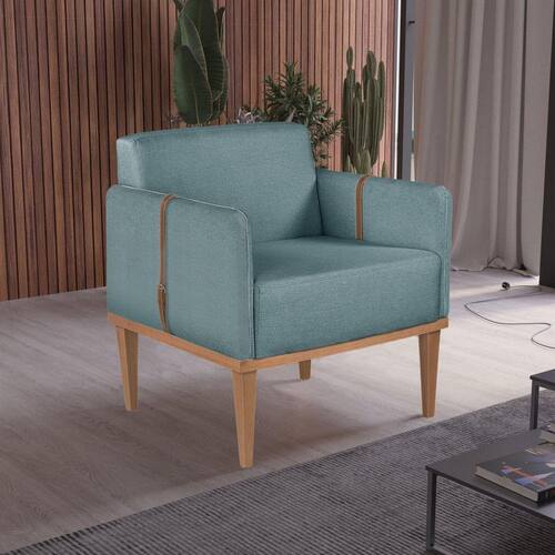 Poltrona em Linho 80cm com Cinto nos Braços Duali Azul - Azul Doce