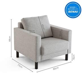 A Poltrona Antúrio MadeiraMadeira é muito confortável, é o que você precisa na sua sala de estar! Muito confortável para relaxar vendo TV! Vem desmontada, mas calma... É muito fácil de montar, tão fácil que só demora só 5 minutos, sem a necessidade de nenhuma ferramenta adicional. Possui as seguintes medidas (A x L x P): 68 x 80 x 77 cm, estrutura é de eucalipto, espuma do assento é D-28 envolta com manta ecosoft e encosto é de fibra de poliéster. Depois nos conte como foi a experiência de compra e como ficou seu ambiente nos comentários! Acompanha Almofadas extras: Não Acompanha Puff: Não Almofada do assento: Fixa Almofada do encosto: Removível Altura do assento até o chão: 40 cm Altura do Encosto: 68 cm Altura dos Pés: 15 cm Ambiente Principal: Sala de Estar Complexidade da Montagem: Baixa: pode ser montado por uma pessoa sozinha Cor do Produto: Cinza Design Assinado: Não Enchimento do Assento: Espuma D-28 Enchimento do Braço: Espuma D-33 Enchimento do Encosto: Fibra Siliconada Encosto para a Cabeça: Não Estampado: Não Extensível: Não Firmeza do Assento: Médio Itens Inclusos: Uma Poltrona e Manual de Montagem Linha ou Coleção: Antúrio Manual de Montagem e Instalação: https://cdn2.madeiramadeira.com.br/atributo/herval-estofados-private/529661-i-020-1-poltrona-anturio.pdf Material do Braço: Estrutura em Eucaliptos com revestimento 100% Polipropileno Material dos Pés: Madeira Modelo de Poltrona: Fixo Necessita Montagem: Sim Peso: 20 kg Possui Percintas Elásticas: Sim Possui Pés: 04 Possui Rodízio: Não Recomendações de Uso, Manutenção e Limpeza: Fazer a limpeza com espanador de pó ou aspirador e movimentos delicados. Sistema de Montagem: Encaixe Suporta Até (kg): 130 kg Tipo de Assento: Fixo Tipo de Encosto: Fixo