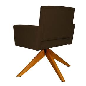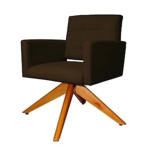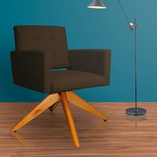 Poltrona Estofada Base Giratoria Madeira Camila Suede Marrom - LM DECOR