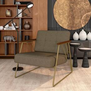 Detalhes Técnicos das Poltronas - Assento e Encosto Tapeçados, Estofados e Fixos - Espuma do Assento e do Encosto: D20 - Tonalidade Estrutura: Dourado - Tonalidade Estofado: Suede Capuccino - Material: Metalon - Medida Poltrona: A:78CM x L:71CM x P:88CM - Altura do assento ao chão:42CM - Poltrona suporta até 120KG
