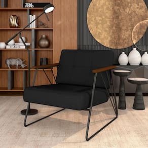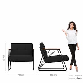 Detalhes Técnicos das Poltronas - Assento e Encosto Tapeçados, Estofados e Fixos - Espuma do Assento e do Encosto: D20 - Tonalidade Estrutura: Preto Fosco -Tonalidade Estofado: Suede Preto - Material: Metalon - Medida Poltrona: A:78CM x L:71CM x P:88CM - Poltrona suporta até 120KG