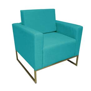 Poltrona Estofada Com Base de Ferro Para Salão de Beleza Leticia Pé Ferro Suede Azul Turquesa - LM DECOR