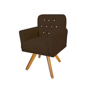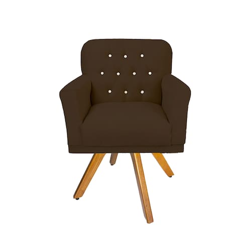 Poltrona Estofada Com Base Giratória de Madeira Sala de Visitas Anitta Corano Marrom LM DECOR