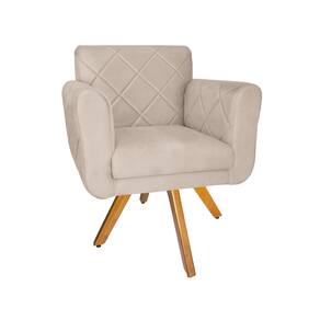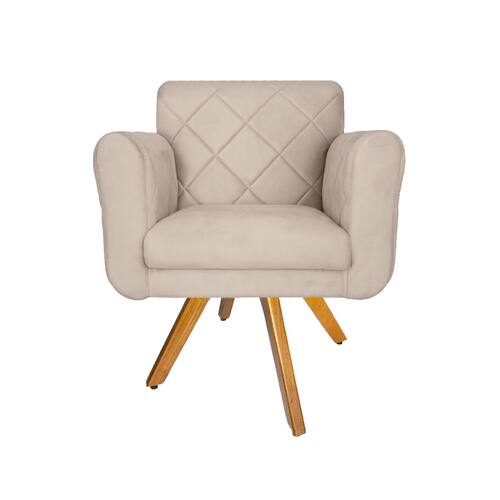 Poltrona Estofada Com Base Giratória De Madeira Sala Isabella Corano Bege - LM DECOR