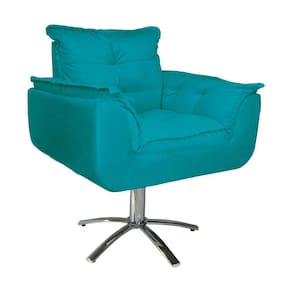 Poltrona Estofada Com Base Giratória de Metal Opala Suede Azul Turquesa - LM DECOR
