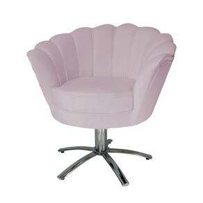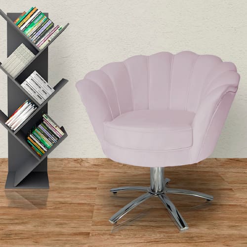 Poltrona Estofada Hall de Entrada Base Giratória de Metal Pétala Suede Rose - LM DECOR - Rosê