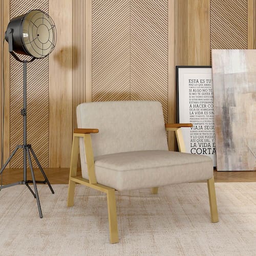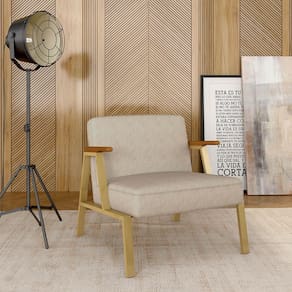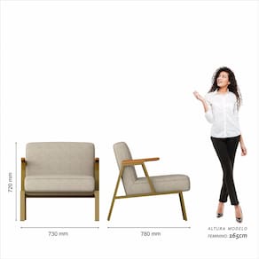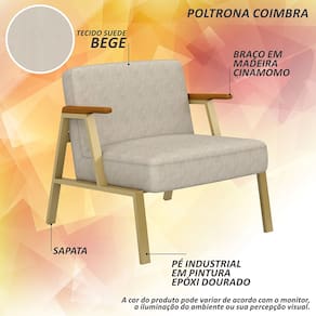 Detalhes Técnicos das Poltronas - Assento e Encosto Tapeçados, Estofados e Fixos - Espuma do Assento e do Encosto: D20 - Tonalidade da Estrutura: Dourado/Cinamomo -Tonalidade do Tecido: Suede Bege - Material: Estrutura em Metalon | Braço em Madeira - Medida Poltrona: A: 72CM x L: 78CM x P: 73CM - Medida do chão até o assento: 42cm de altura - Poltrona suporta até 120KG - Montagem: Difícil