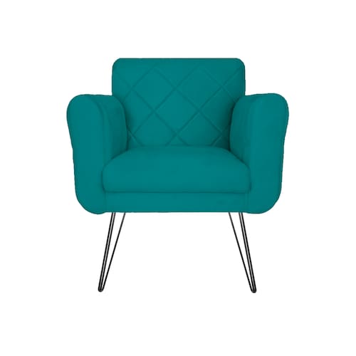 Poltrona Estofada Para Hall de Entrada Com Pés de Ferro Isabella Suede Azul Turquesa - LM DECOR