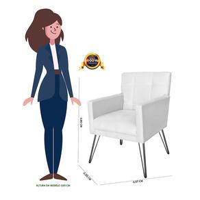 Poltrona Estofada Para Sala de Espera Pés de Ferro Onix Corano Branco - LM DECOR