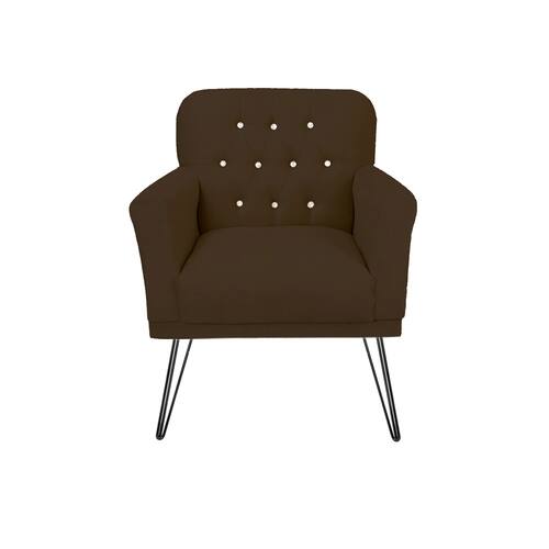 Poltrona Estofada Para Salão de Beleza Pés de Ferro Anitta Corano Marrom - LM DECOR