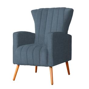 Poltrona Estofada Pés Palito Sala de Estar Melinda Linho Azul - LM DECOR - Azul Petróleo