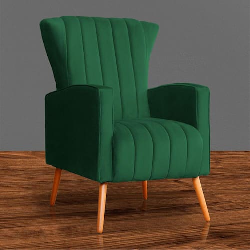 Poltrona Estofada Pés Palito Sala de Estar Melinda Veludo Verde - LM DECOR