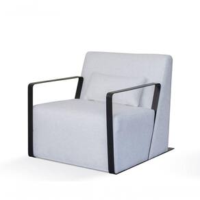 Poltrona Estofada Tecido Cinza Base Metal 0,81x0,84mt Hana Cinza - Poltrona Tecido Cinza Fixa Estofada
