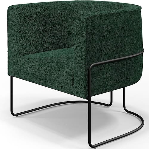 A Poltrona Decorativa Fixa Base Aço Preto Betina D02 Bouclê Verde - Lyam Decor exala formosura e elegância! Excelente opção para dispor em sua sala de estar ou espera, recepção, hall de entrada, dormitório, qualquer área de circulação ou antessala entre um cômodo e outro, as possibilidades de combinação são infinitas. Seu protagonismo é notório, sem sombra de dúvidas é perfeita para qualquer ambientação que desejar colocá-la.