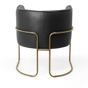A Poltrona Decorativa Fixa Base de Aço Bronze Betina D02 Corano Preto Fosco B-97 - Lyam Decor exala formosura e elegância! Excelente opção para dispor em sua sala de estar ou espera, recepção, hall de entrada, dormitório, qualquer área de circulação ou antessala entre um cômodo e outro, as possibilidades de combinação são infinitas. Seu protagonismo é notório, sem sombra de dúvidas é perfeita para qualquer ambientação que desejar colocá-la.
