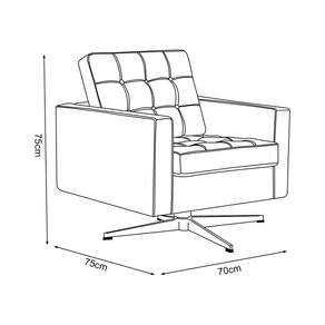 Couro Sintético e AlumínioA Poltrona FK traduz o equilíbrio entre funcionalidade e estilo. Seu design geométrico, com assento e encosto bem definidos trazem textura e profundidade, e sua base giratória adiciona praticidade ao uso diário, criando uma presença marcante no ambiente.
