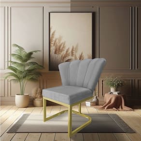 A Cadeira Poltrona Flor em veludo é uma peça que une estilo e conforto de maneira única. Seu revestimento em veludo proporciona um toque suave e elegante, enquanto a Base Metálica confere um charme adicional ao design da poltrona.