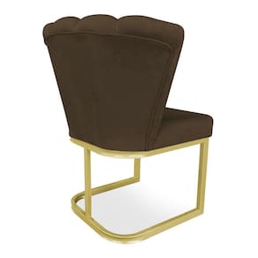 Poltrona Flor Veludo Marrom Base Metálica Industrial Dourado - Pallazio