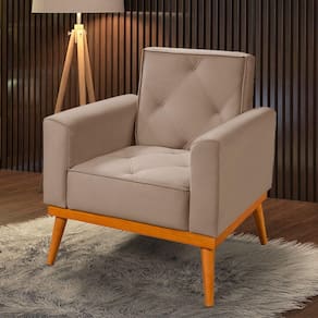 AS IMAGENS SÃO MERAMENTE ILUSTRATIVAS E PODEM SOFRER VARIAÇÕES DE COR E PEQUENOS DETALHES DE ACORDO COM O SEU MONITOR, ILUMINAÇÃO DO AMBIENTE E ATÉ MESMO A SUA PERCEPÇÃO VISUAL.Poltrona FlorenÃa Base em Madeira MaciÃa Veludo Castor