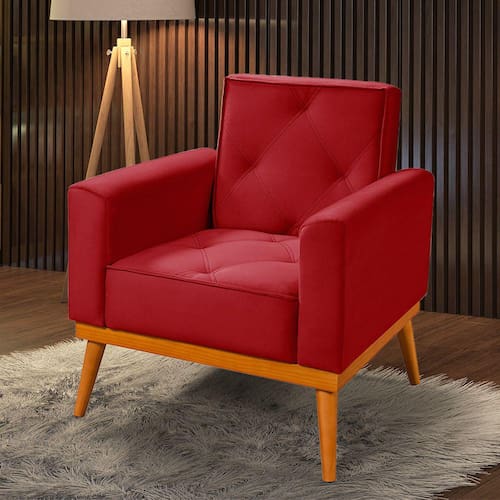 Poltrona Florença Base em Madeira Maciça Veludo Vermelho