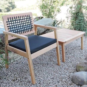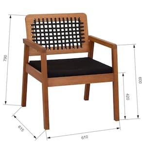 - Materiais: Estrutura em madeira de eucalipto maciço, encosto em corda trançada e assento estofado em Tecido Acquablock