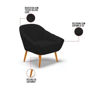 A poltrona Giovana é uma peça indispensável para momentos de descanso depois de um dia longo de trabalho. E não há nada melhor que poder relaxar em um móvel de extremo conforto não é mesmo! Afinal ela dará aquele toque de perfeição ao seu ambiente. Conta com uma estrutura reforçada em madeira eucalipto que oferece alta resistência e qualidade ao móvel. Produzida com Pés Palito Castanho que suportam até 120 kg, seu estofamento é com espuma de densidade D-23, revestido em tecido Veludo no tom Preto Luxo que contribui para que o assento fique firme por mais tempo. Sua durabilidade e conforto é seu diferencial. Você também amou? Então, é só escolher a Poltrona que tem mais a ver com a sua decoração.