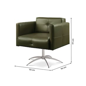 Apresente um toque de sofisticação ao seu ambiente com a poltrona Angra, desenvolvida especialmente para áreas comerciais e salas modernas. Com uma base giratória em alumínio, que oferece robustez e durabilidade, além de ser resistente à corrosão. O assento, revestido em couro sintético de alta qualidade, oferece conforto e fácil manutenção, ideal para ambientes de uso intenso. Sua estrutura, confeccionada em eucalipto e com pés em madeira seca e tratada, garante uma resistência e durabilidade. O assento acolchoado em espuma D28, com design ergonômico, assegura um conforto excepcional. Seja em recepções, escritórios ou como complemento à decoração da sua sala, a poltrona Angra une funcionalidade e design em uma única peça, trazendo elegância e praticidade para qualquer espaço. Acompanha Almofadas extras: Não Acompanha Puff: Não Almofada do assento: Não Possui Almofada do encosto: Fixa Altura do assento até o chão: 47 cm Altura do Encosto: 30 cm Ambiente Principal: Sala de Estar Complexidade da Montagem: Baixa: pode ser montado por uma pessoa sozinha Cor: Verde Cor do Produto: Verde Design Assinado: Não Enchimento do Braço: Espuma D-28 Enchimento do Encosto: Espuma D-28 Encosto para a Cabeça: Não Estampado: Não Extensível: Não Itens Inclusos: 1 poltrona Angra Linha ou Coleção: Angra Manual de Montagem e Instalação: https://product-hub-prd.madeiramadeira.com.br/931245/documents/5fd95690-2e14-48ee-8edb-2821e829ec052272760518817248753064291.pdf Material do Braço: Couro sintético Material dos Pés: Alumínio Modelo de Poltrona: Giratório Necessita Montagem: Sim Origem do Produto: Nacional Peso: 15 kg Possui Percintas Elásticas: Não Possui Pés: 01 Possui Rodízio: Não Recomendações de Uso, Manutenção e Limpeza: Utilizar aspirador de pó, escova com cerdas macias ou limpeza a seco. Não utilizar produtos químicos, abrasivos ou limpeza a vapor. Evitar exposição prolongada ao sol. Sistema de Montagem: Parafusos Suporta Até (kg): 120 kg Tecido Predominante: Couro Sintético Tipo de Assento: Fixo Tipo de Encosto: Fixo Tipo de Espuma do Encosto: Espuma Convencional Tipo de Poltrona: Decorativa Marca: Zurc Decor