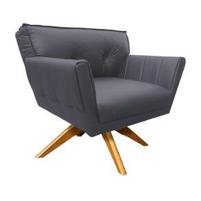 Poltrona Giratória Anitta Corino Base Madeira D'Rossi
