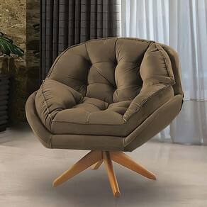 A versatilidade dessa poltrona é destacada pela base giratória, proporcionando mobilidade e praticidade ao ambiente. Seus detalhes cuidadosamente pensados, como costuras decorativas e a harmonia entre o veludo e a madeira, conferem um visual contemporâneo e acolhedor.